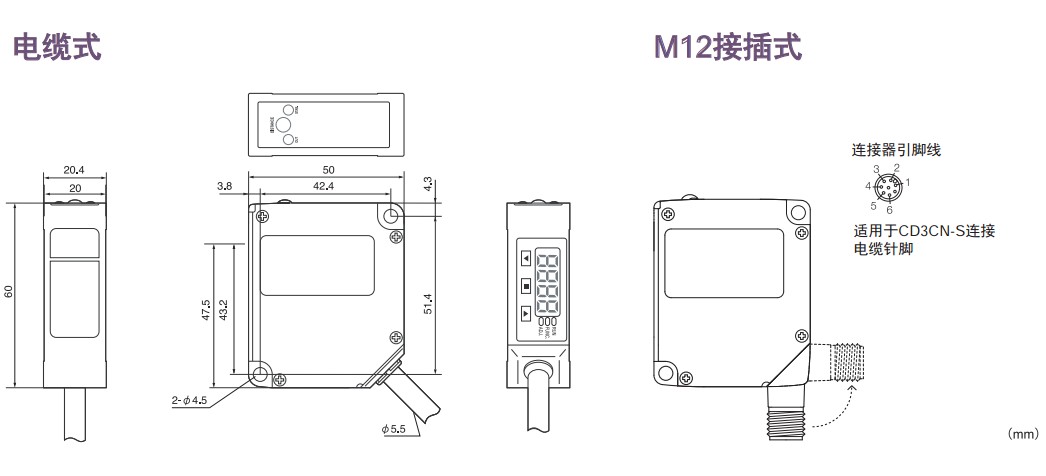 激光位移傳感器CD3系列外型尺寸: 點擊圖片放大(單位:mm)