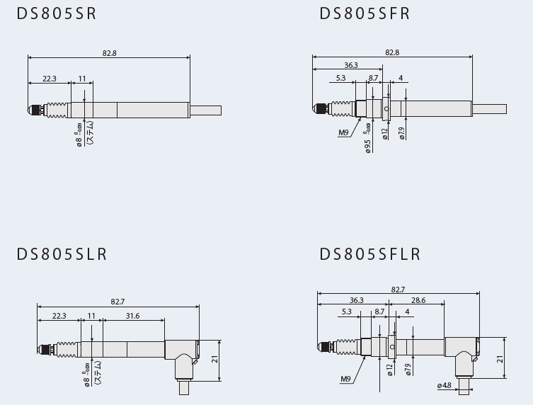 DS800S Series的型號:DS805SR、DS805SFR、DS812SR、DS812SFR、DS805SLR、DS805SFLR、DS812SLR/SVR、DS812SFLR DS800S Series的尺寸圖: DS805S尺寸圖