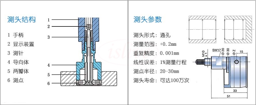 量儀特性:測頭可更換, 再現性好, 重復性好, 高壽命, 可定制適合大批量