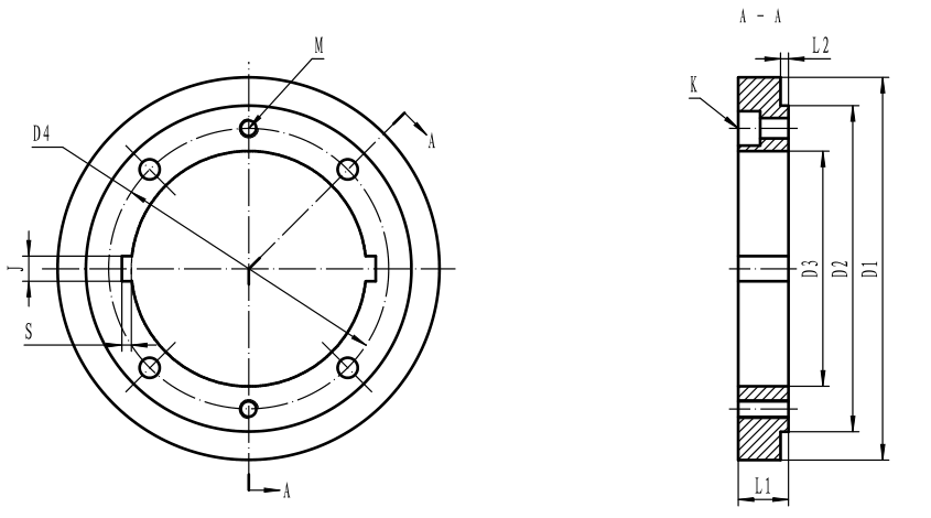 J [ 鍵槽寬度 ] —— 用戶(hù)根據(jù)合理尺寸自行定制,如不需要可忽略