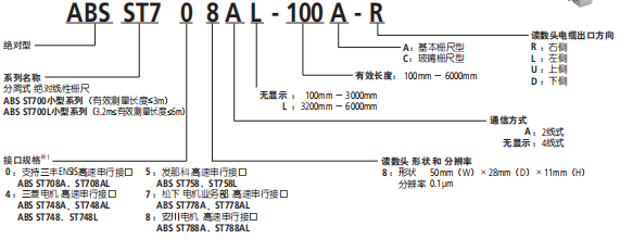 產(chǎn)品介紹ABS ST700/ST700L電磁感式絕對光柵尺 ,量程6米,顯示精度0.1um/0.5um/0.01um/0.05um高頻率及穩(wěn)定性。 ABS ST700系列特點: 1、抗污染強 2、適合線性電機 ABS ST700系列解決方案: ●線性電機用反饋?光柵尺 1.因為是絕對式光柵尺 適用于日本廠家伺服放大器接口