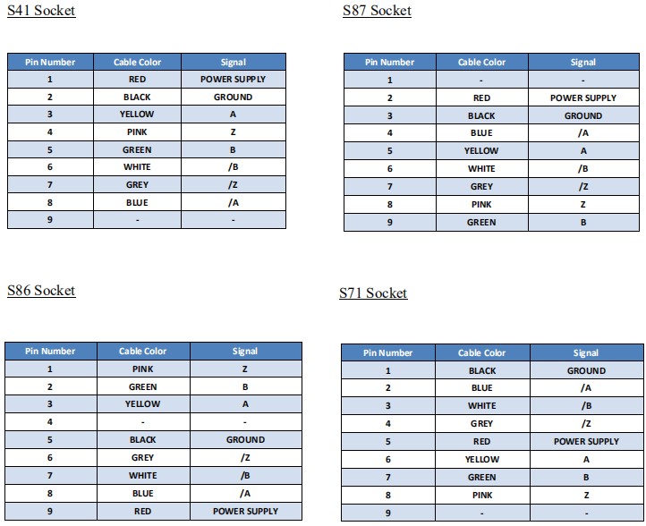 在左邊的平板電腦中,給出了傳感器輸出信號的電纜顏色。如果控制電路適合于非輸出信號(/A,/B,/Z)的線路驅(qū)動(dòng)傳感器,則必須將其添加到系統(tǒng)中。如果它不合適/A,/B,/Z信號電纜必須固定為單獨(dú)絕緣。別忘了這些邊緣也有電。