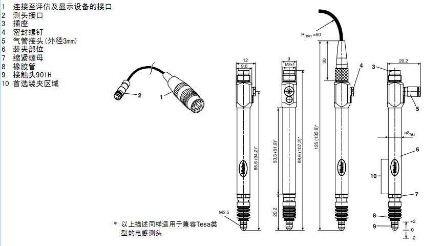 產品介紹德國馬爾電感測頭 Millimar P1300 M/T半橋式 Mahr P1300 M/T半橋式電感測頭 特性: