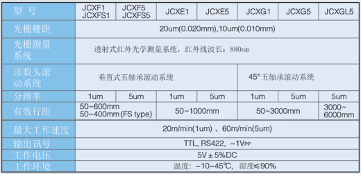 | JCXE1 | 1μm | 50~1000mm | 20m/min | ±5μm | ±3μm | ±8μm | ±5μm |