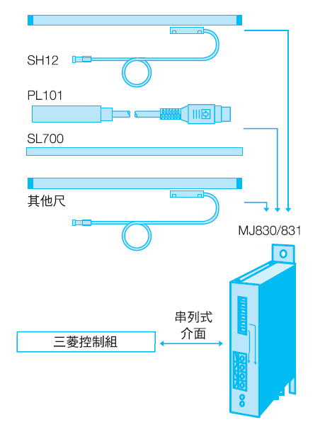 產品介紹簡單介紹: 用于三菱MR-J2超級系列放大器的內插器MJ830/MJ831 信號轉換器放大器MJ830/MJ831; 允許直流補償、增益補償、相位差補償, 配用產品:PL101,SH12及通用類似輸出編碼器。 適用于三菱公司專用串列式介面協議。特性: 產品特性: 用于三菱MR-J2超級系列放大器的內插器MJ830/MJ831 輸入阻抗 Input impedance:120 Ω 差動輸入電壓 voltage differential input:1 Vp-p 最高響應頻率Max. response frequency:140 kHz for any number of divisions selected 電源 Power supply:MJ830 DC 5V(4.5-5.5V);MJ831 DC 12V-24V(11V-32V)