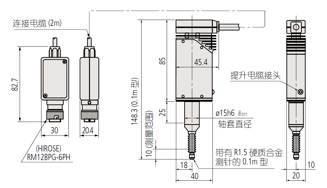測量范圍 | 貨號 | 分辨率 | 精度 | 測力* | 軸套直徑 | 備注 |